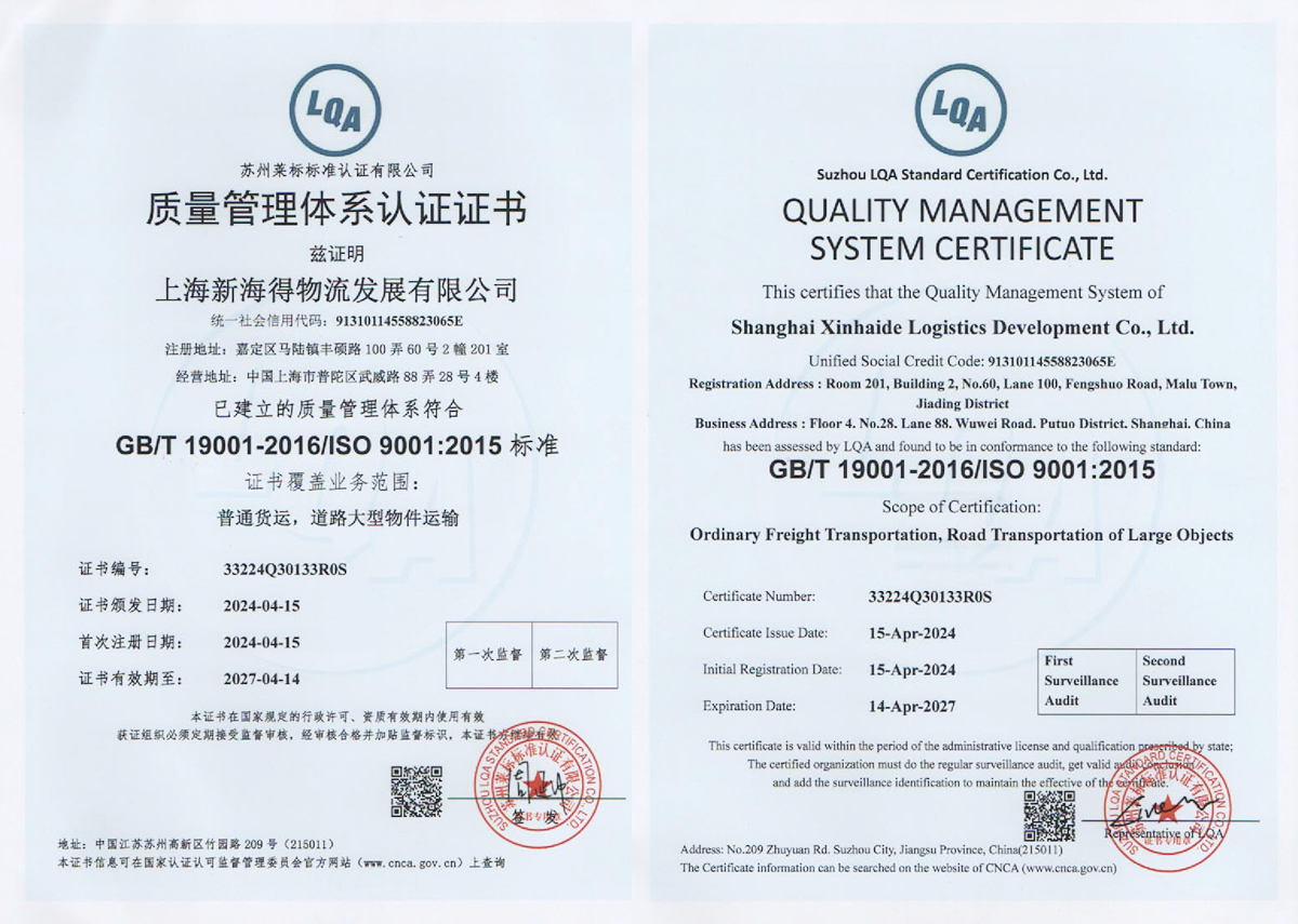 新海得物流嚴(yán)格按現(xiàn)代物流操作流程進(jìn)行標(biāo)準(zhǔn)化運(yùn)作。已通過(guò)國(guó)際質(zhì)量管理體系ISO9001:2015體系認(rèn)證。運(yùn)用健全的客戶服務(wù)管理系統(tǒng)、車(chē)輛管理系統(tǒng),財(cái)務(wù)管理系統(tǒng)。在查詢(xún)、監(jiān)控、追蹤、結(jié)算等方面與客戶做到無(wú)縫對(duì)接,打造了專(zhuān)業(yè)高效的客戶服務(wù)體系。